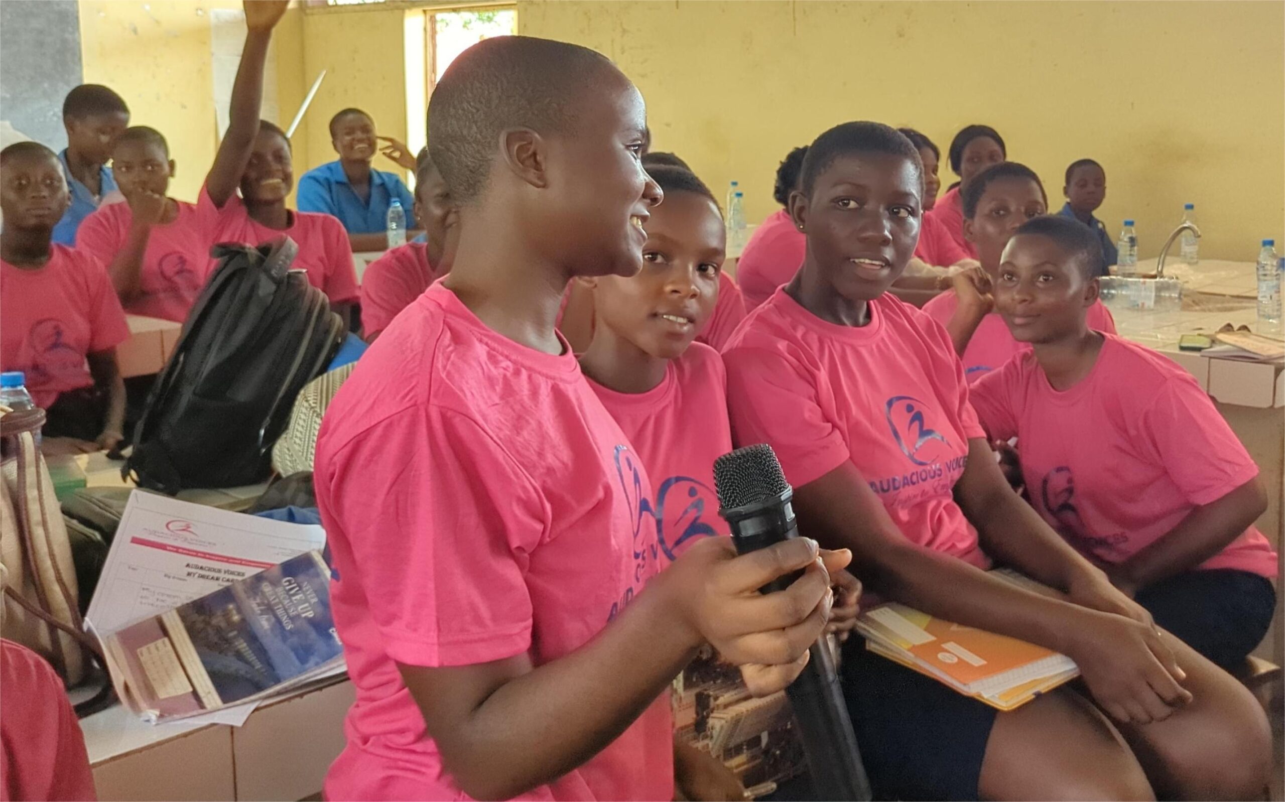 Audacious Voices at a workshop with the Government Bilingual High School (GBHS) Limbe, underprivileged female students.